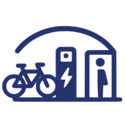 Parkeer uw e-bike veilig in onze overdekte stalling, laad uw accu op in een van de lockers en… laad uzelf ook meteen even op.